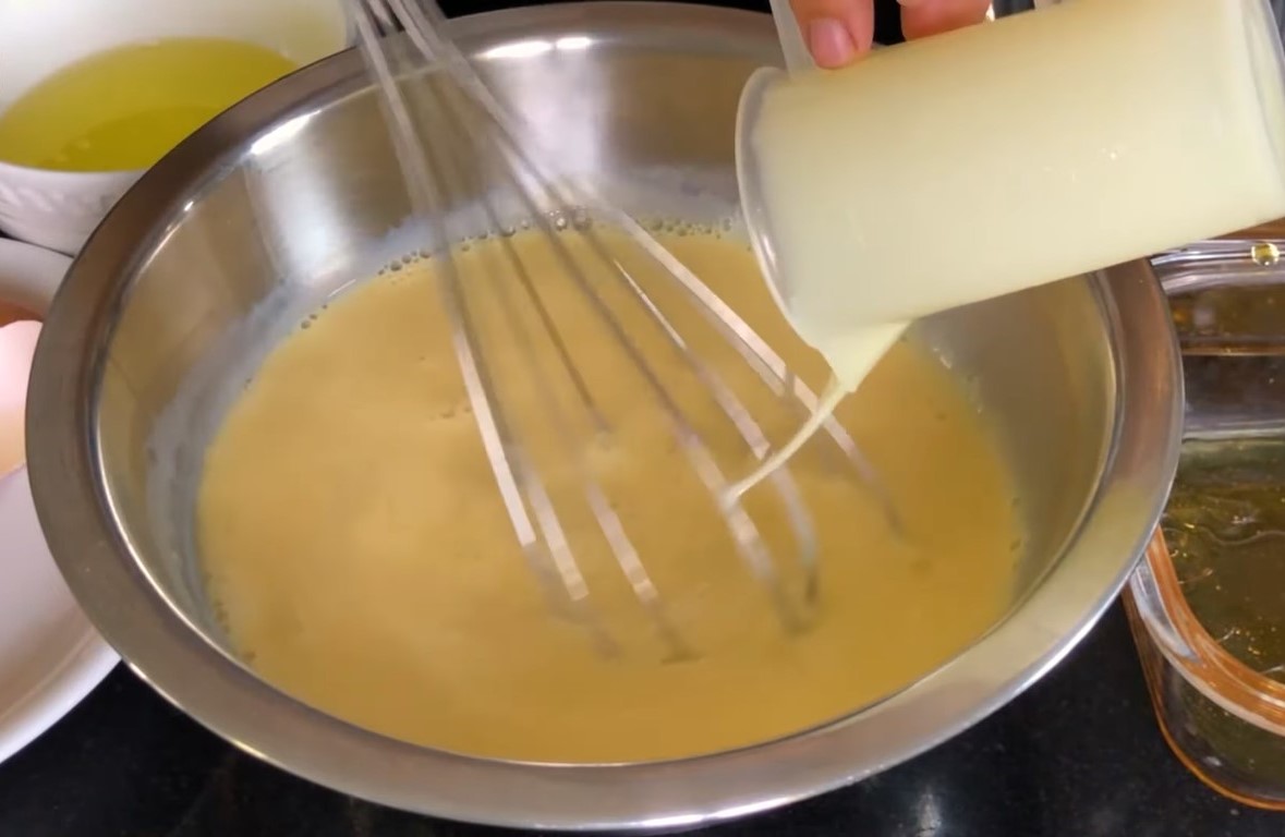 - Cho tiếp chút tinh chất vani vào hỗn hợp sữa trứng và khuấy đều.