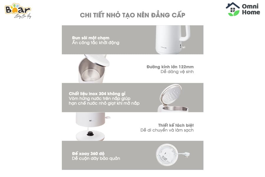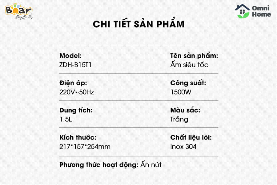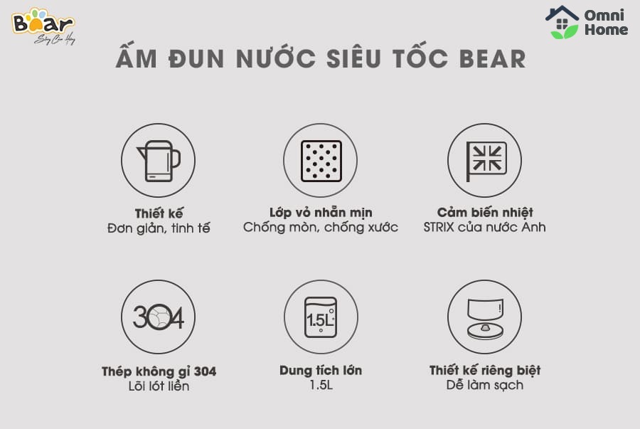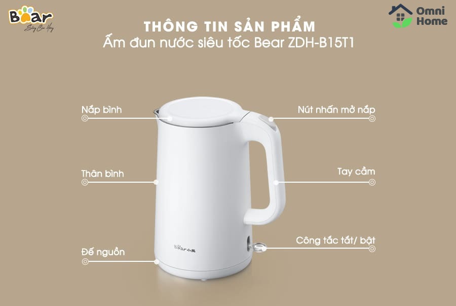 Bình đun nước siêu tốc Bear ZDH-B15T1