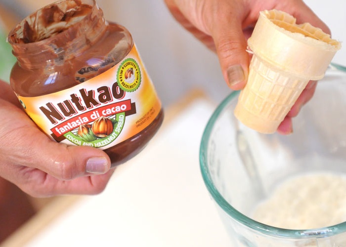 Cuối cùng là thêm đường và socola vào máy và xay tiếp khoảng 10 giây.