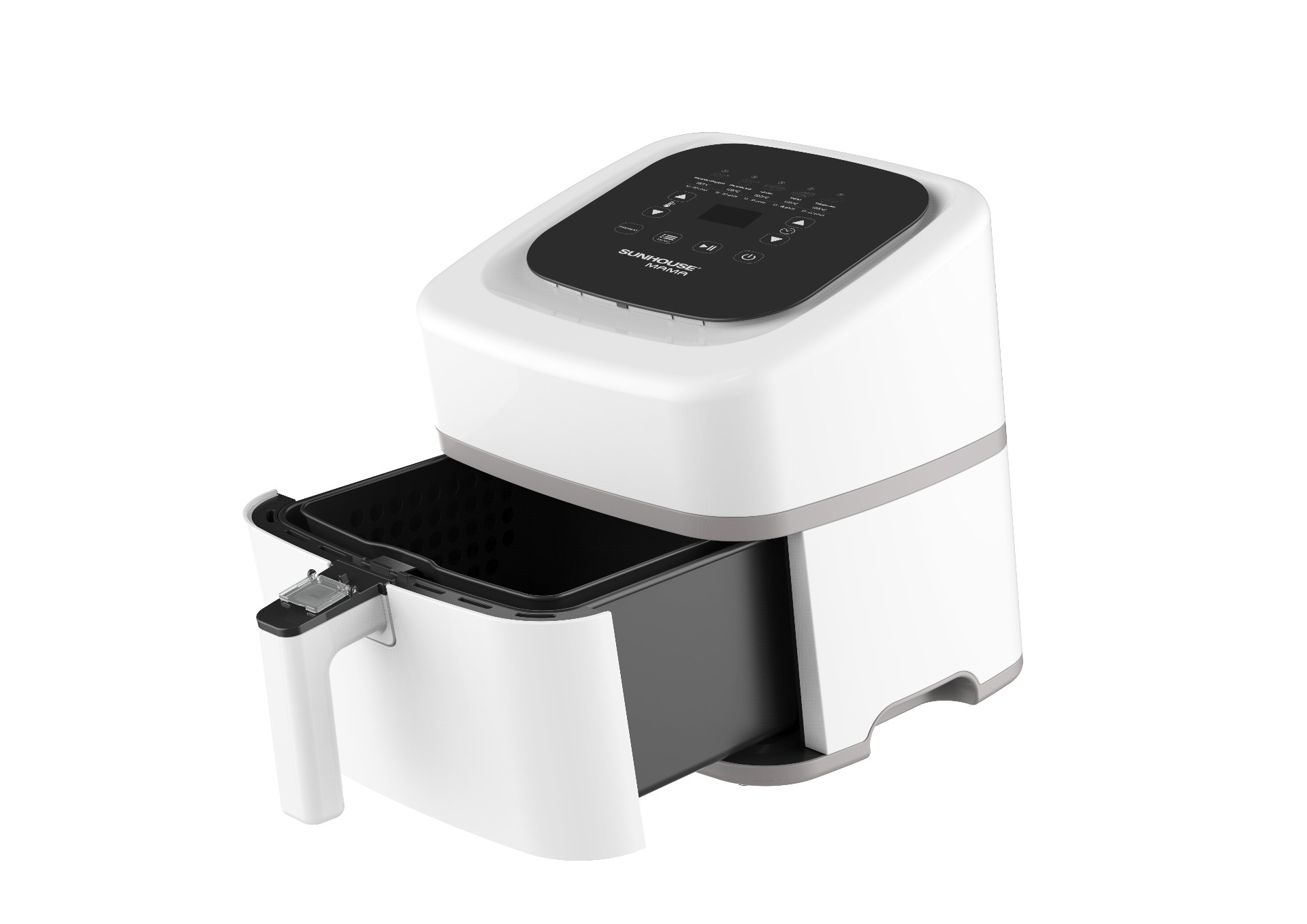 Nồi chiên không dầu Sunhouse được thiết kế kiểu dáng nhỏ gọn, độc đáo và hiện đại với vỏ màu trắng, làm bằng nhựa PP cao cấp giúp cách nhiệt tốt, giảm nguy cơ bị bỏng cho người dùng.