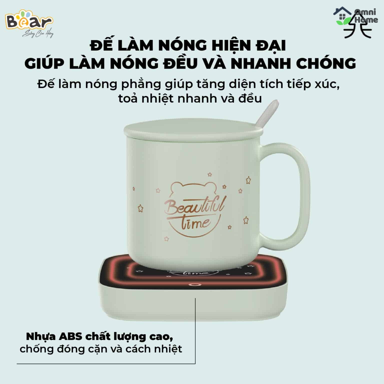 Không chỉ làm nóng bằng chất liệu sứ, đế sưởi Bear còn làm ấm được các chất liệu như inox, bình sữa, thủy tinh...