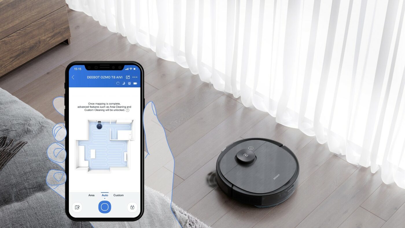 Robot được kết nối với điện thoại qua ứng dụng Ecovacs App giúp cho người sử dụng dễ dàng kiểm soát thiết bị mọi lúc mọi nơi. Người dùng có thể dùng áp này để điều chỉnh thông số, giám sát lộ trình làm việc, tạo lịch trình làm việc cho robot,...