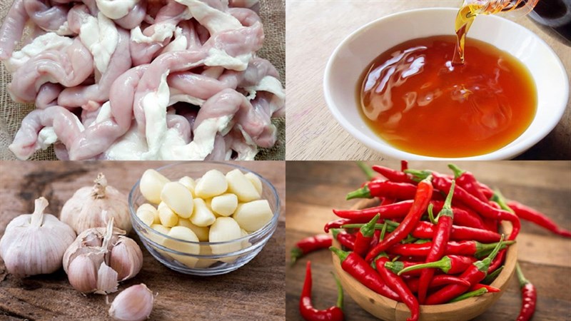 Các nguyên liệu vô cùng đơn giản: Lòng heo ( 500g), tỏi ( 4 tép), chanh ( 1 quả), ớt ( 2 quả), rượu trắng ( 4 muỗng canh), tiêu hạt ( 1 muỗng cà phê), nước mắm ( 3 muỗng canh) và các gia vị khác ( đường, muối…)