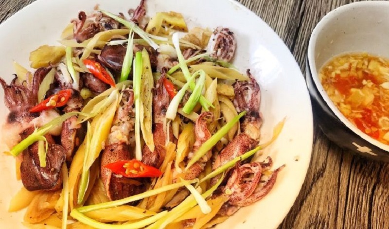 Món mực hấp hành thơm ngon, ngọt thịt, đậm đà hương vị.