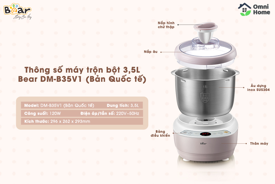 Máy nhào bột tự động 3.5L Bear HMJ-A35M1