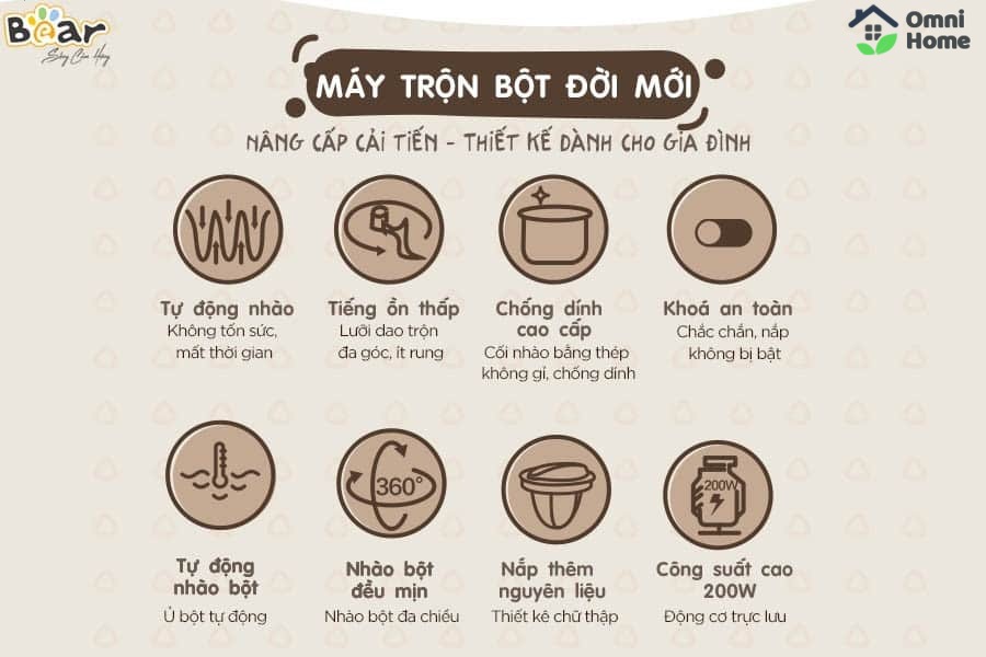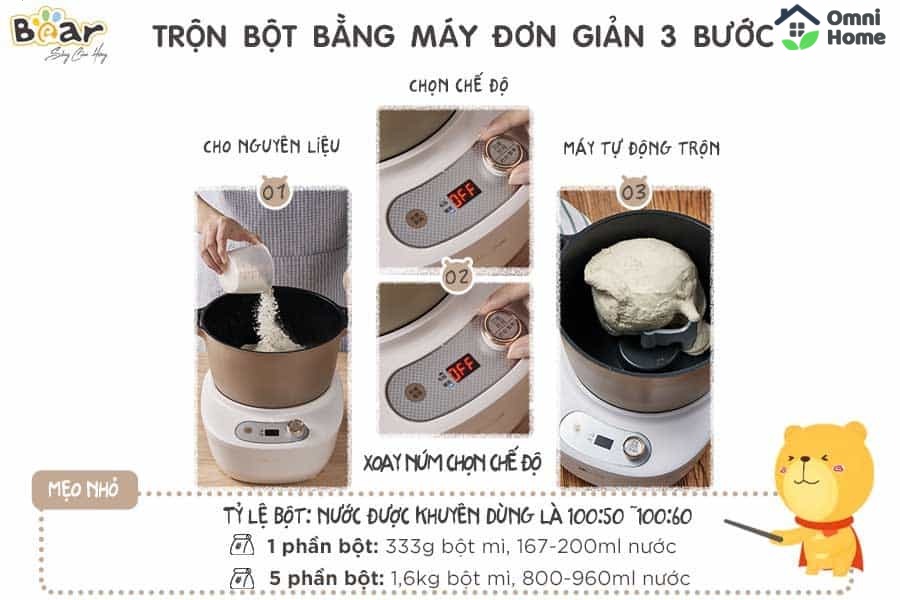 Máy nhào bột tự động 5L Bear HMJ-A50E2