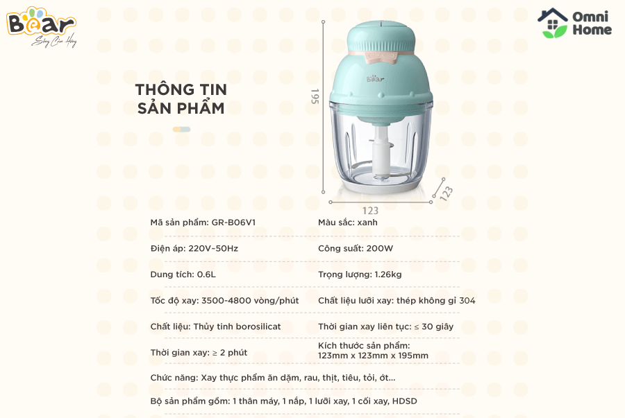 Thông số kỹ thuật Máy xay 0.6L Bear GR-B06V1