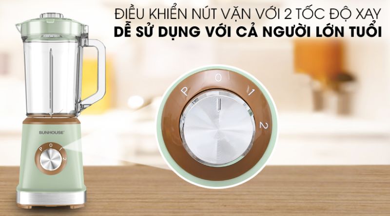 Sunhouse SHD5315G sử dụng nút vặn cơ để điều chỉnh chức năng. Máy có 2 tốc độ xay để bạn lựa chọn phù hợp với từng loại thực phẩm và 1 số nhồi để tăng hiệu quả xay.