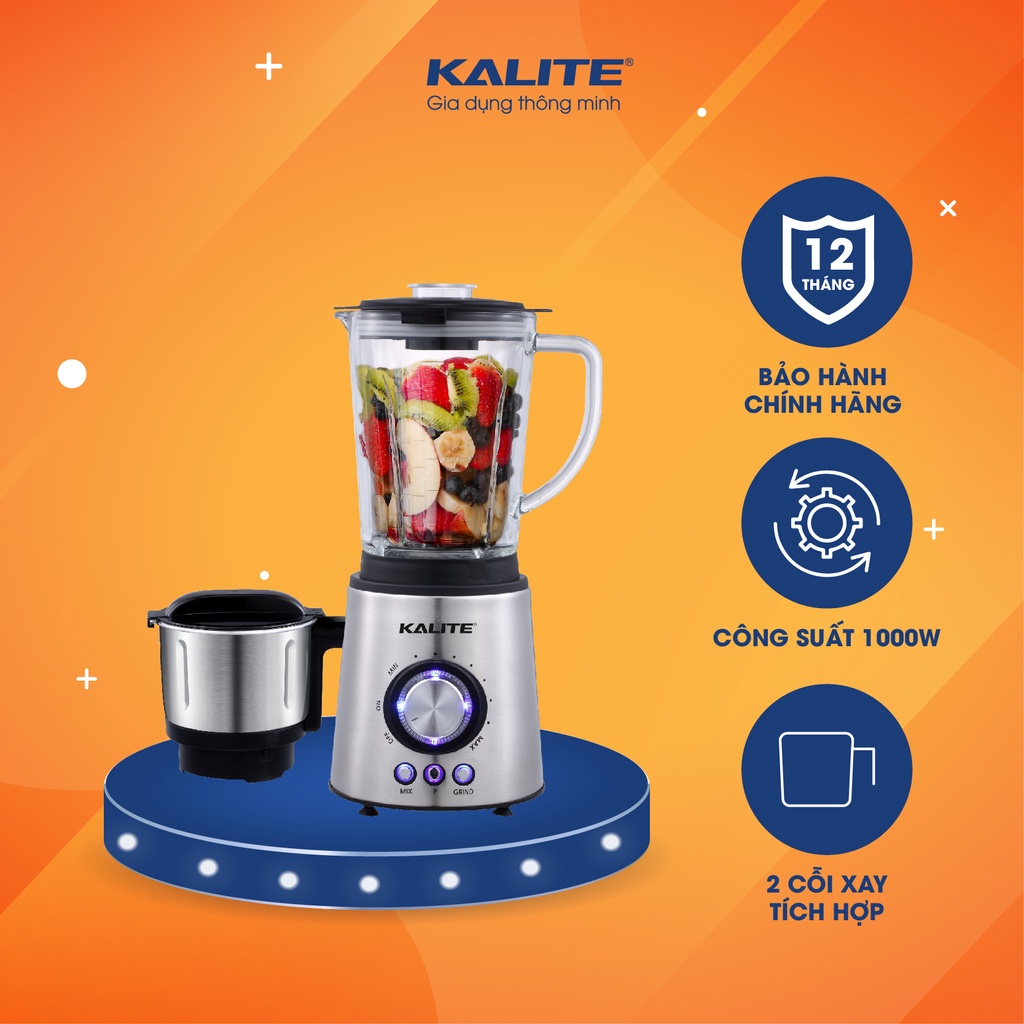 Máy xay sinh tố Kalite KEB4171 có công suất lên tới 1000W cùng lưỡi dao xay được làm bằng thép không gỉ cao cấp và motor xay 100% bằng đồng giúp máy xay nhanh chóng, dễ dàng và nhuyễn mịn mọi loại thực phẩm.