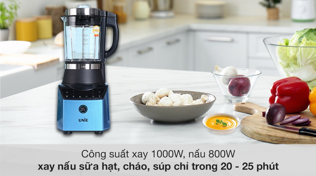 Unie V3 giúp việc xay nấu sữa hạt hay cháo súp thơm ngon chỉ trong vòng 20 – 25 phút, xay hoa quả chỉ với 2 phút, làm sinh tố hay xay đá bào 1 phút 30 giây, xay khô chỉ mất 1 phút, nhanh chóng hoàn thành thành phẩm mong muốn theo nhu cầu sử dụng của bản thân.