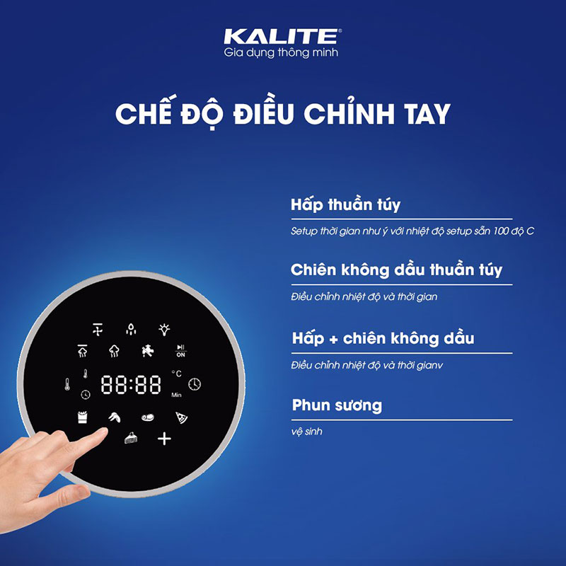 Nồi chiên hơi nước Kalite Steam Star có 2 chế độ: chế độ cài đặt sẵn và chế độ điều chỉnh bằng tay.