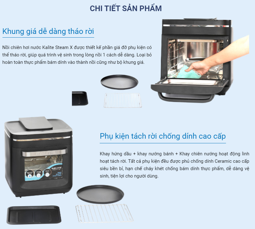 Cấu tạo của nồi chiên hơi nước Kalite Steam X