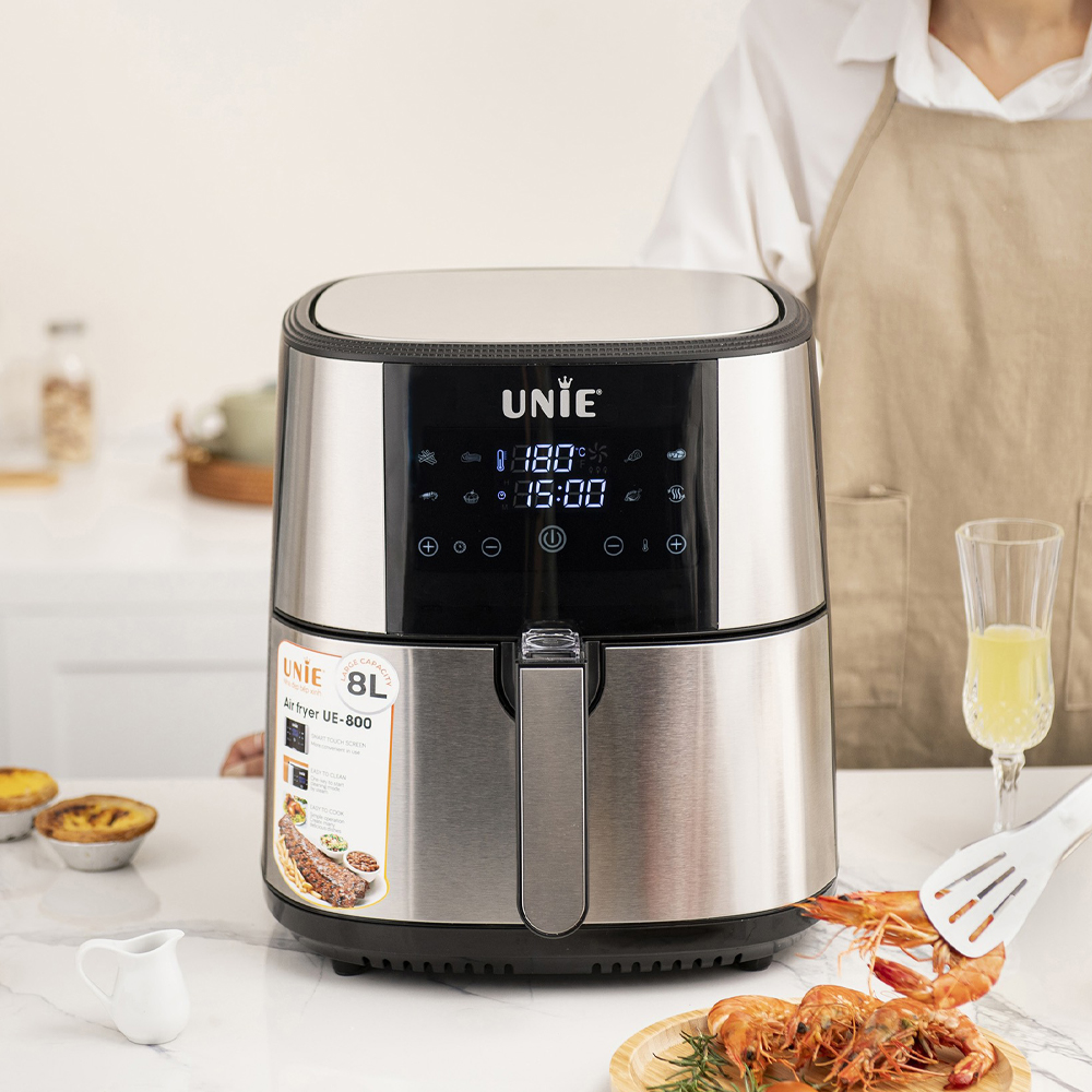 Nồi chiên không dầu Unie UE- 800 được trang bị bảng điều khiển cảm ứng 10 chức năng được cài đặt sẵn, mang đến một ngoại hình vừa truyền thống nhưng cũng rất trendy.
