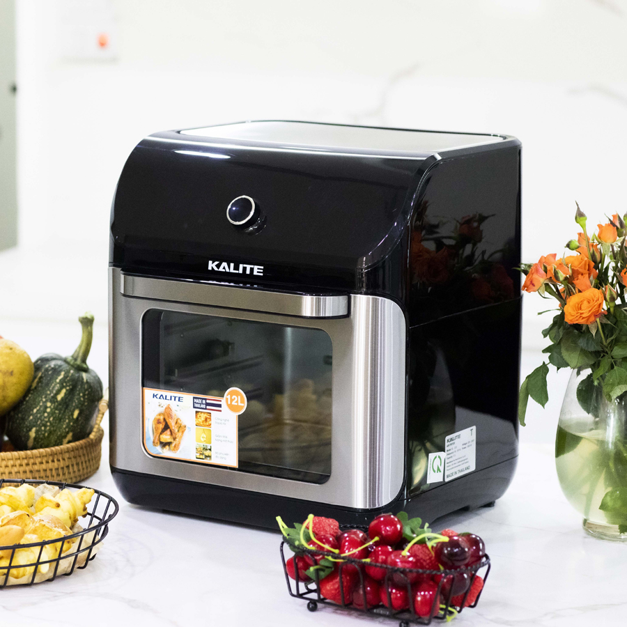 Nồi chiên không dầu Kalite Q12 đươc thiết kế với vẻ ngoài hiện đại, sang trọng, đa dạng chức năng khi kết hợp cả vi sóng, hâm nóng, giã đông và nướng cùng trên 1 chiếc nồi rất tiện lợi.