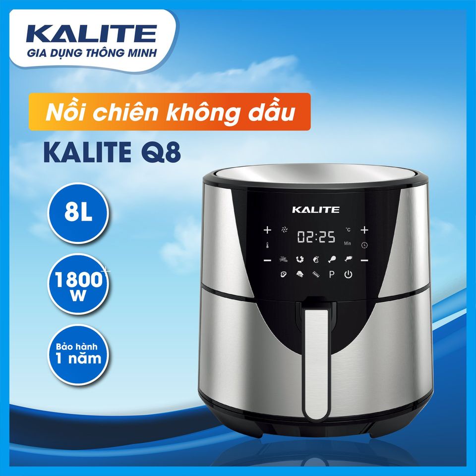Dòng nồi chiên không dầu Kalite Q8 cũng đáng để bạn tham khảo bởi dung tích lớn, thiết kế sang trọng, bắt mắt, giao diện cảm ứng thông minh,hiện đại, linh hoạt dễ dàng sử dụng giá thành phù hợp túi tiền.