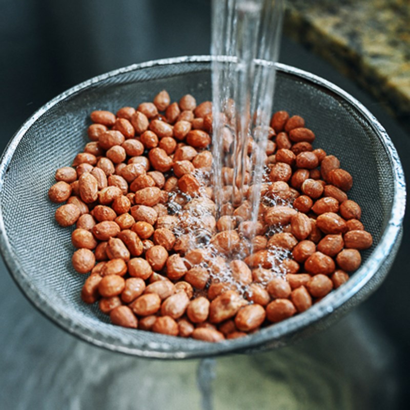 Bước 1: Tiến hành sơ chế lạc bằng cách ngâm nước muối rồi để ráo hoặc lau qua.