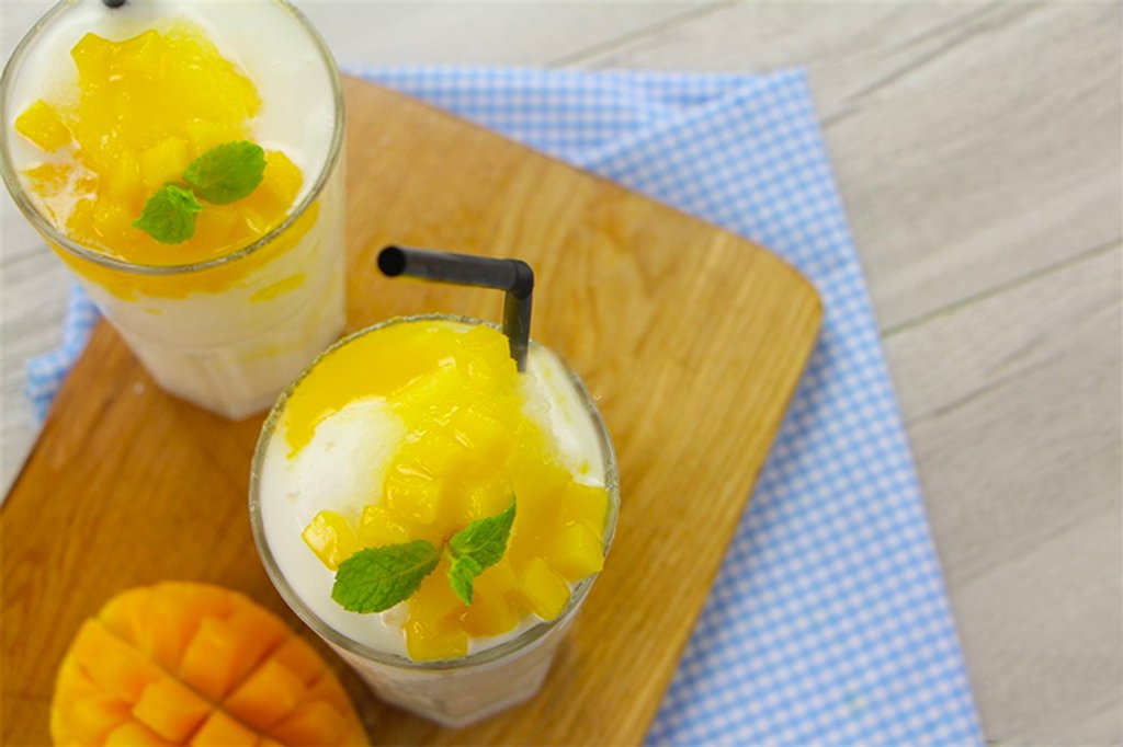 Ta có thể cảm nhận được mùi thơm của xoài và vị ngọt tự nhiên của trái cây, vị bùi béo của cùi dừa quyện với vị chua của sữa chua.