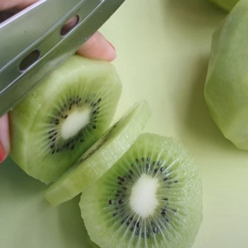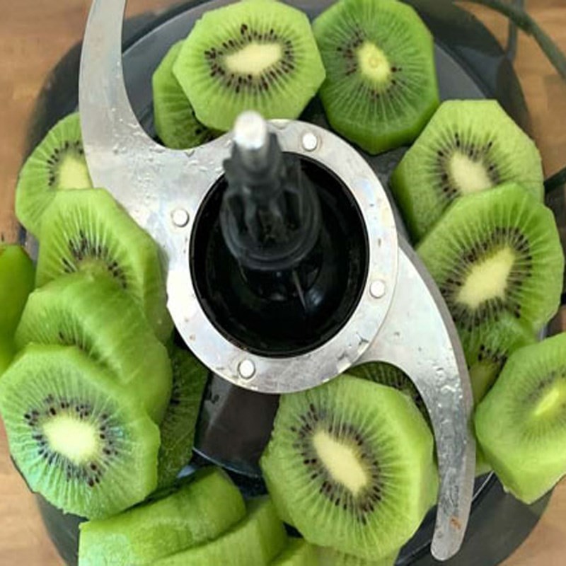 Kiwi gọt vỏ và cắt thành những miếng nhỏ để dễ xay.