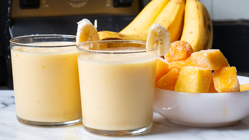 Bạn có thể uống sinh tố chuối xoài vào buổi sáng bận rộn để giúp bổ sung đầy đủ năng lượng khi làm việc nhé.