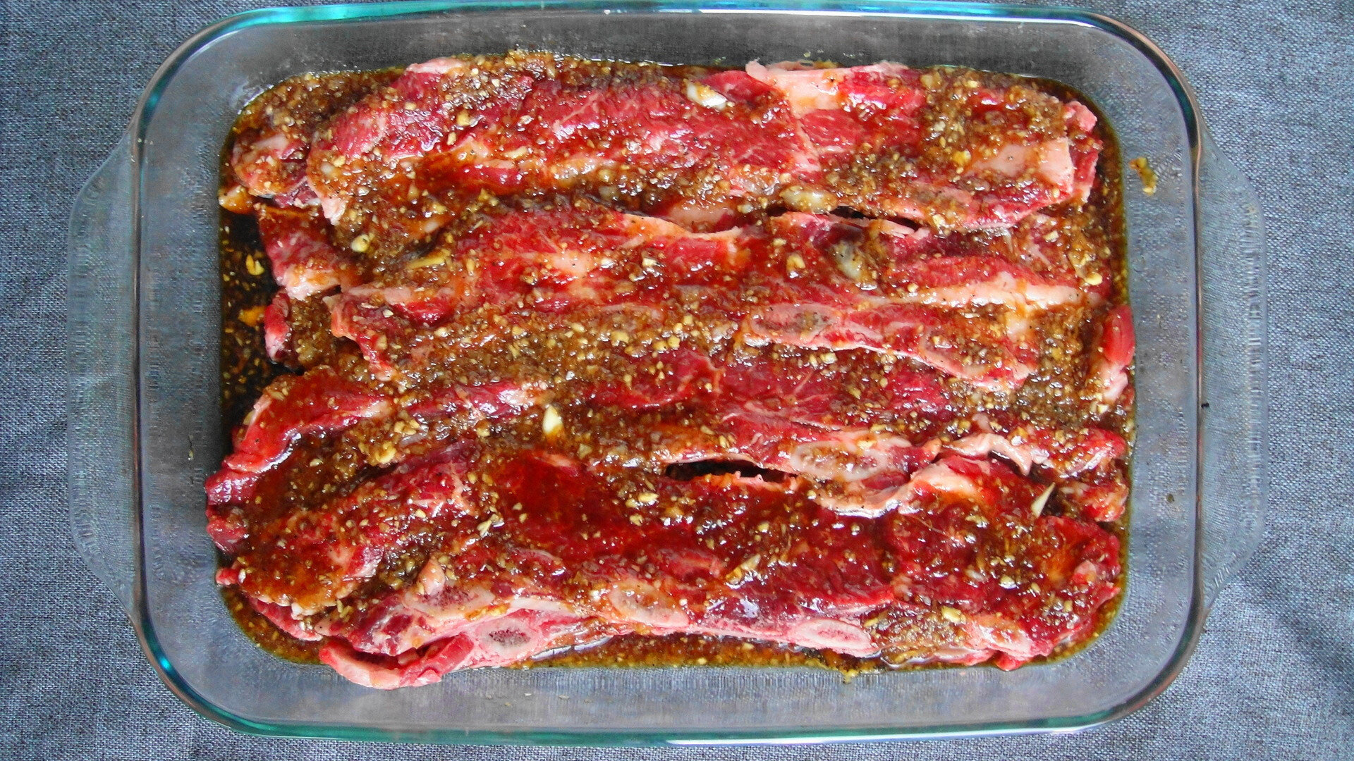 - Sau khi đã ướp xong thịt, bạn lấy thịt ra khỏi tủ lạnh, phết chút dầu ăn lên mặt thịt.