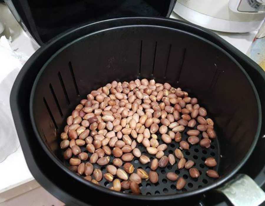 Bước 4: Khi lạc chuyển màu đỏ sậm và nứt ra, có mùi thơm thì hãy thử một hạt xem lạc đã giòn chưa thì có thể ngắn nồi chiên không dầu.