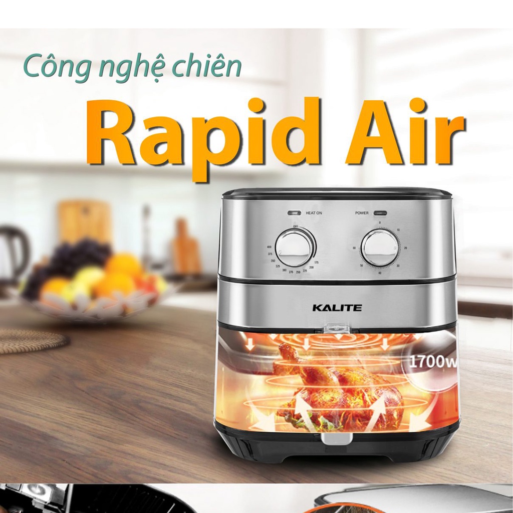 Đặc điểm yêu thích khi sử dụng nồi chiên không dầu Kalite là không cần sử dụng dầu để nấu đồ ăn mà thay vào đó thiết bị sử dụng công nghệ Rapid Air có khả năng đốt nóng không khí lên đến 200 độ.