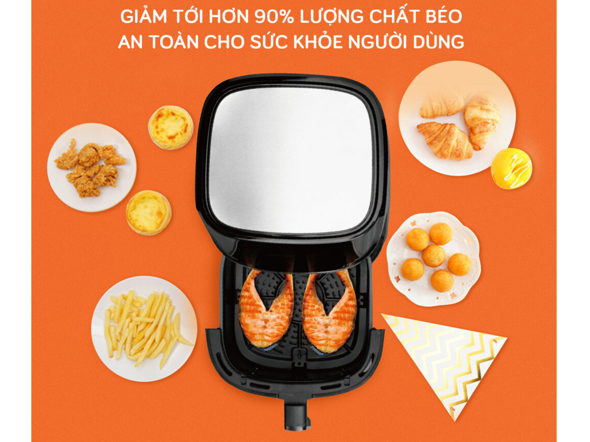 Từ đó, thực phẩm vẫn giữ được sự tươi ngon, đảm bảo dinh dưỡng. Khác với một số nồi chiên không dầu truyền thống trước đây làm cho đồ ăn bị ngấy dầu, mất sự tươi ngon.