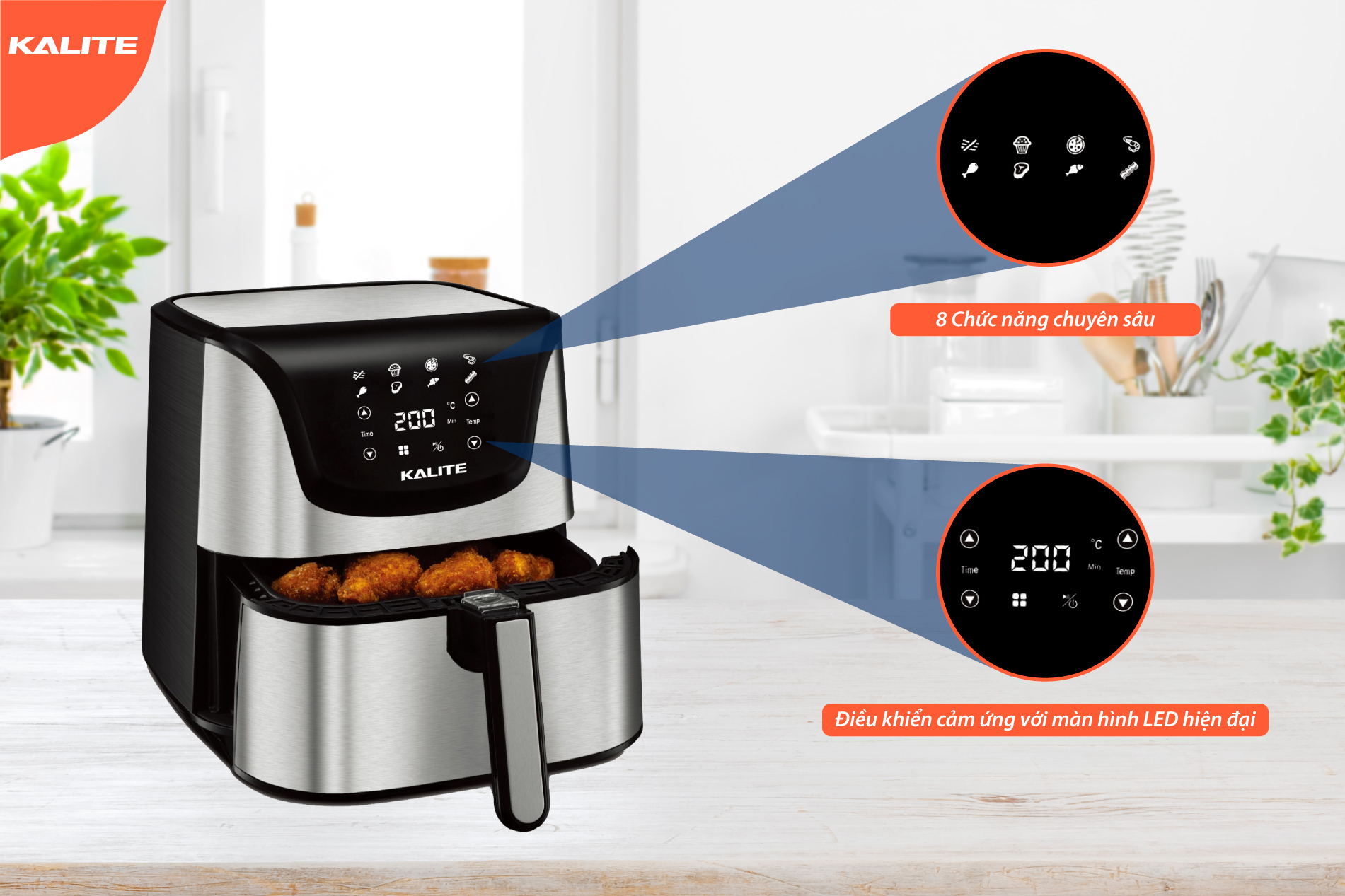 Nhà chiên hơi nước Kalite còn tạo ấn tượng với người dùng bằng màn điều khiển cảm ứng thông minh.
