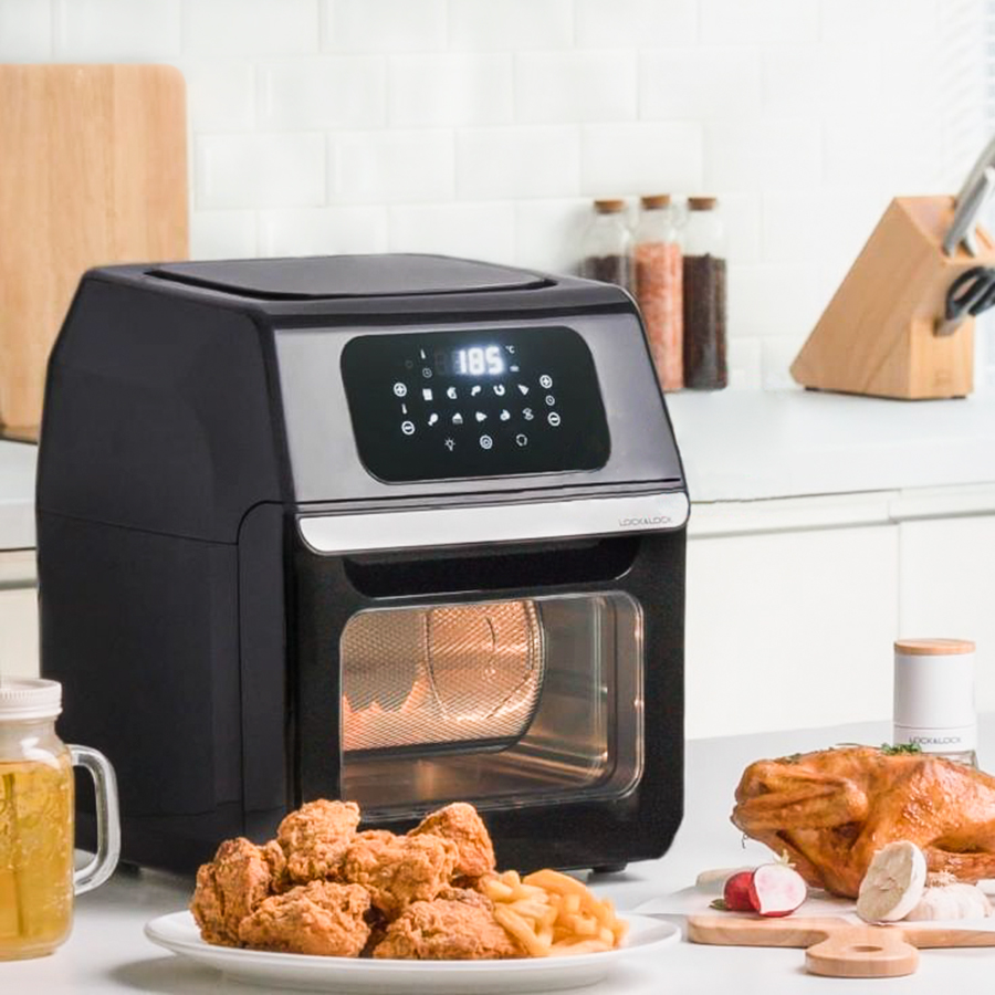 Lò nướng không dầu hỗ trợ các chị em nội trợ với nhiều tính năng như điều chỉnh nhiệt độ thích hợp cho món ăn, hẹn giờ, nhiều chế độ nấu như chiên khoai tây, nướng bánh, chiên thịt, ... tiện lợi cho bạn chế biến đa dạng thực đơn.