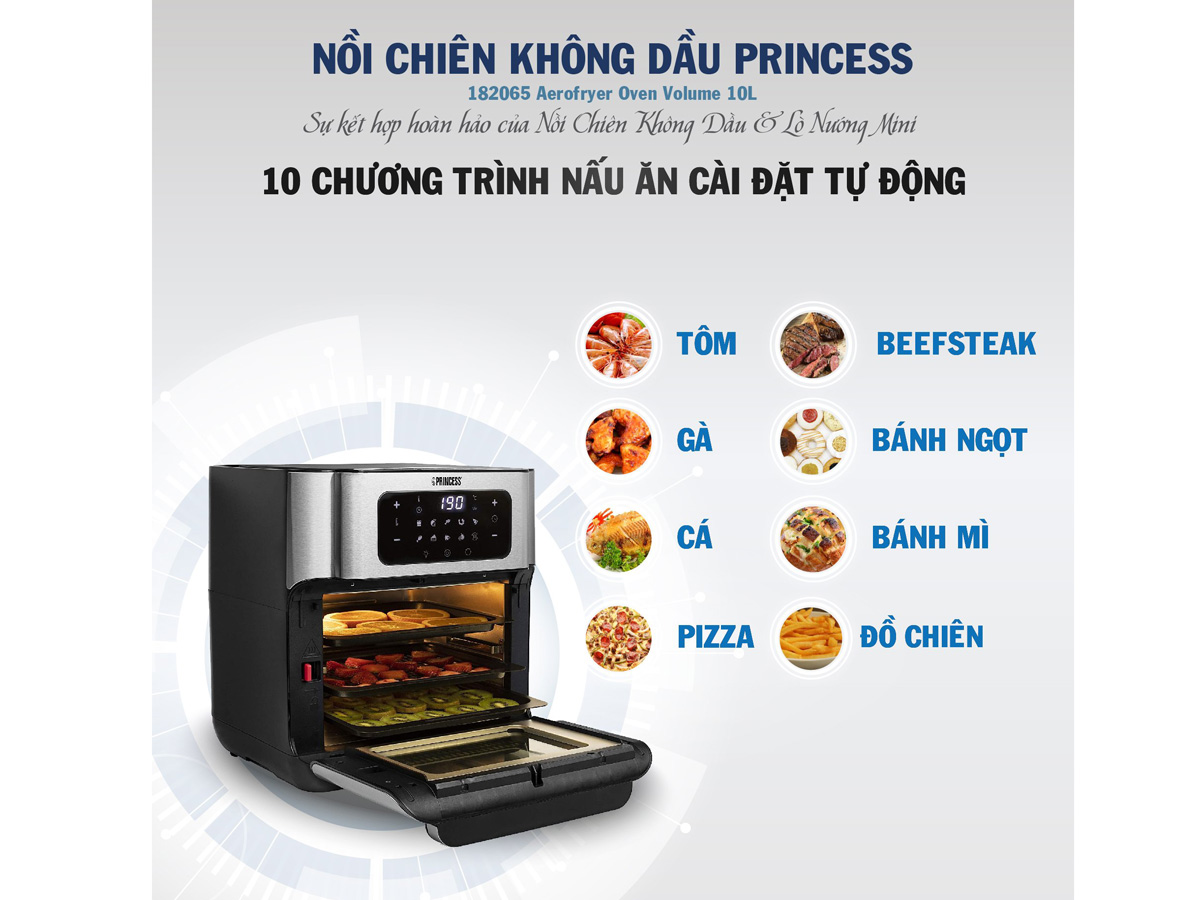 Princess 10L làm chín thức ăn thông qua không khí nóng qua công nghệ đối lưu không khí tốc độ cao. Nhờ đó nhiệt độ được lan tỏa đều trong khoang và làm chín đều thực phẩm mà không cần sử dụng đến dầu mỡ. Đây cũng là cách giúp giảm lượng dầu mỡ dư thừa một cách hiệu quả.