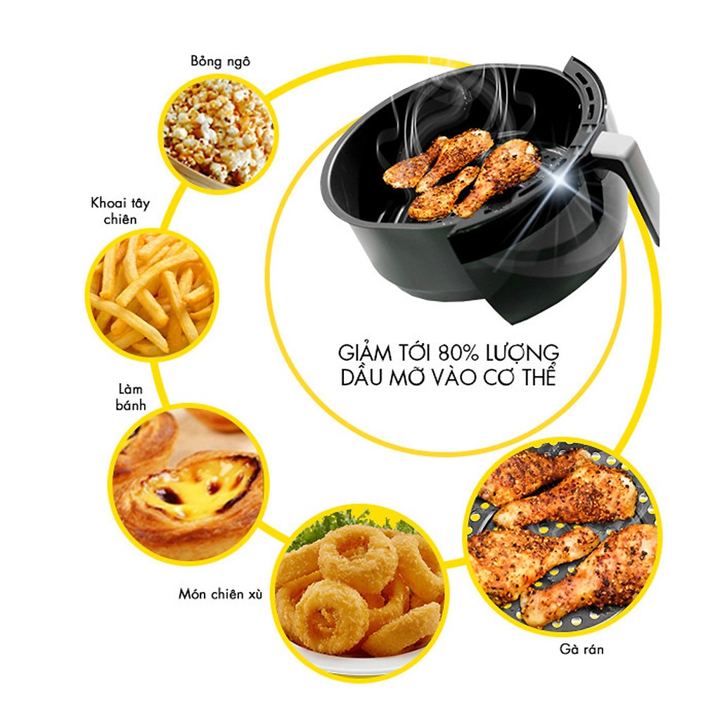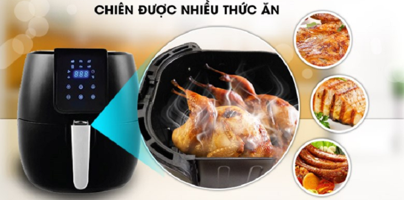 Bởi có dung tích lớn nên sản phẩm có thể chế biến dễ dàng các món như: chiên/ nướng gà nguyên con, thịt nguyên tảng, pizza cỡ lớn, khoai tây chiên, làm bánh…Ngoài các món chiên nướng nồi còn được dùng để ủ sữa chua, sấy hoa quả, giã đông thực phẩm…