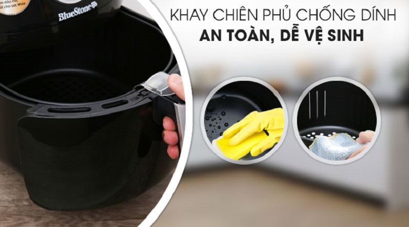 Việc vệ sinh nồi sau mỗi lần dùng cũng không còn là trở ngại bởi lòng nồi và vỉ chiên được phủ chống dính, an toàn khi sử dụng.