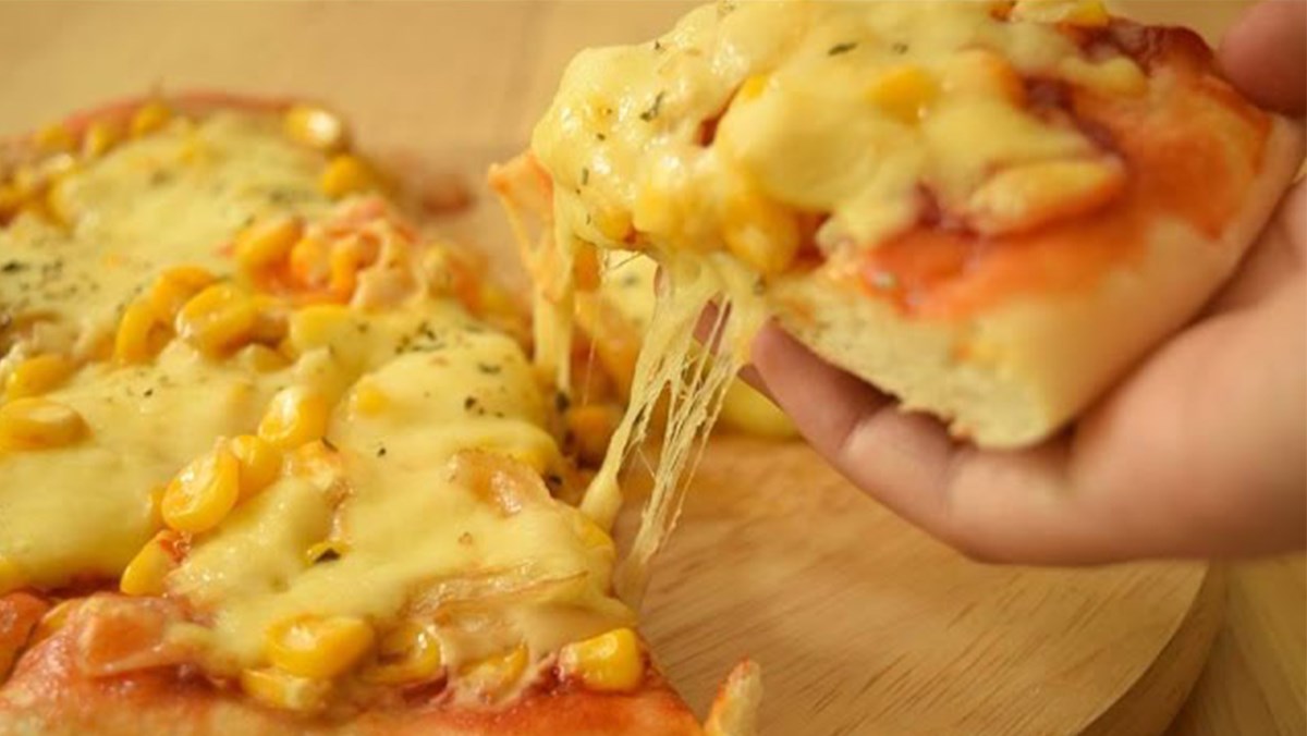 6.Hướng dẫn cách làm bánh pizza bắp phô mai bằng nồi chiên không dầu